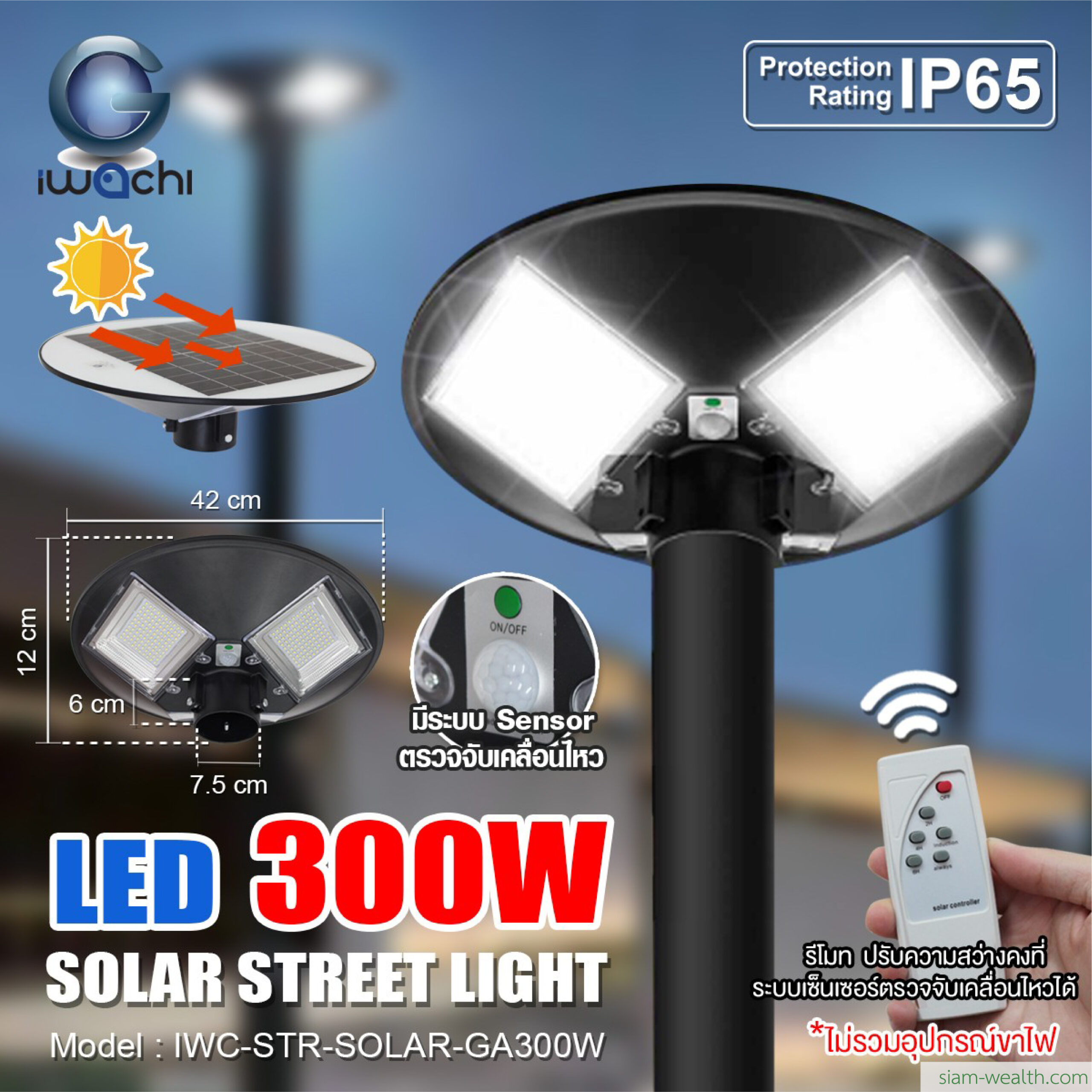 โคมไฟถนนโซล่าเซลล์ IWACHI รุ่น SOLAR-GA-300W