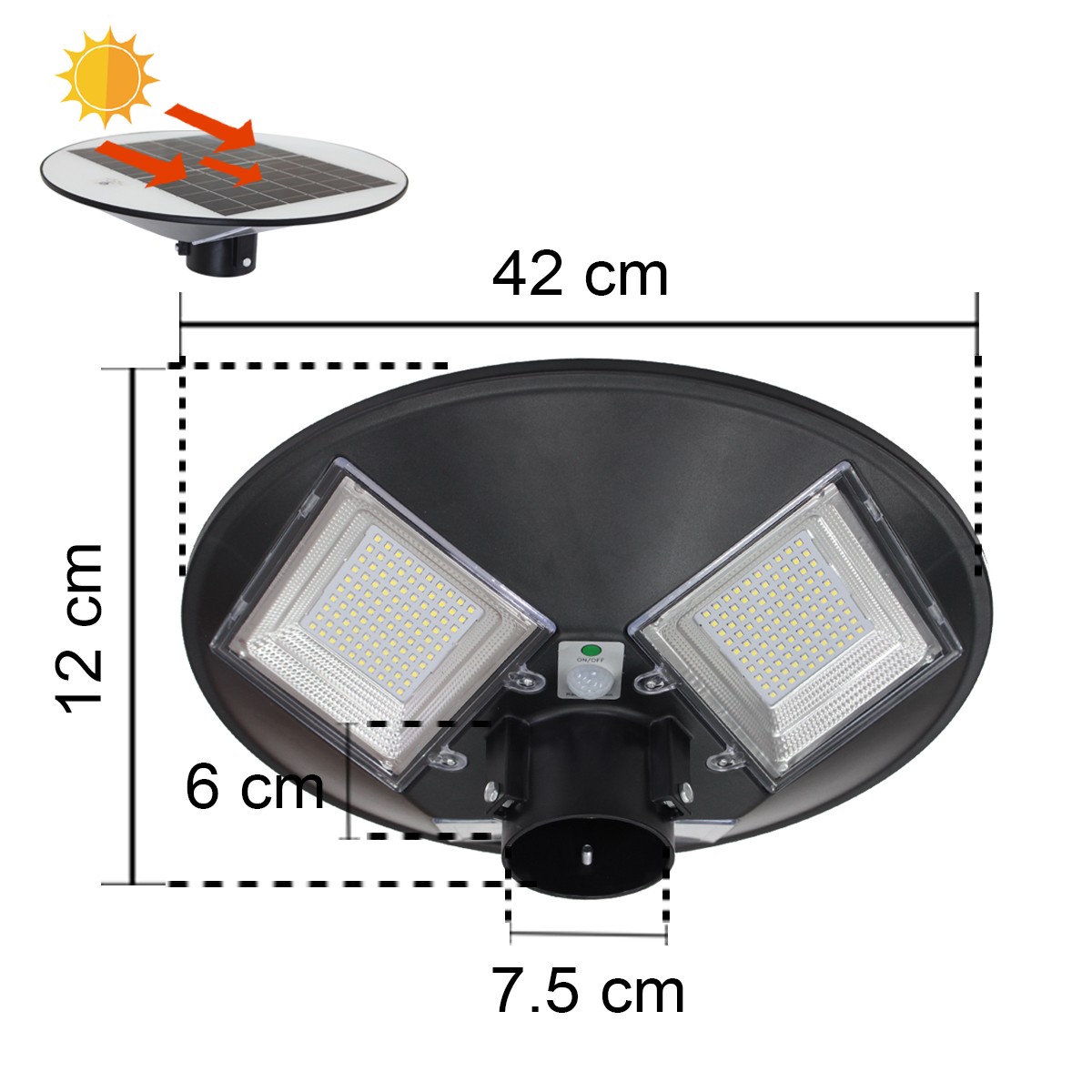โคมไฟถนนโซล่าเซลล์ทรง UFO พร้อมแผงโซล่าเซลล์ในตัว มีขนาดให้เลือกหลายกำลังไฟ ส่องสว่างได้ดี ครอบเลนส์กระจายแสงอย่างมีประสิทธิภาพสว่างทั่วทุกพื้นที่ ทนในทุกสภาพอากาศ ติดตั้งง่าย รูปทรงสวยงาม เหมาะแก่การใช้งานเช่น ในที่กลางแจ้ง ไฟถนน ไฟทางเดินเท้า ไฟบ่อปลา ไฟรีสอร์ท เป็นต้น