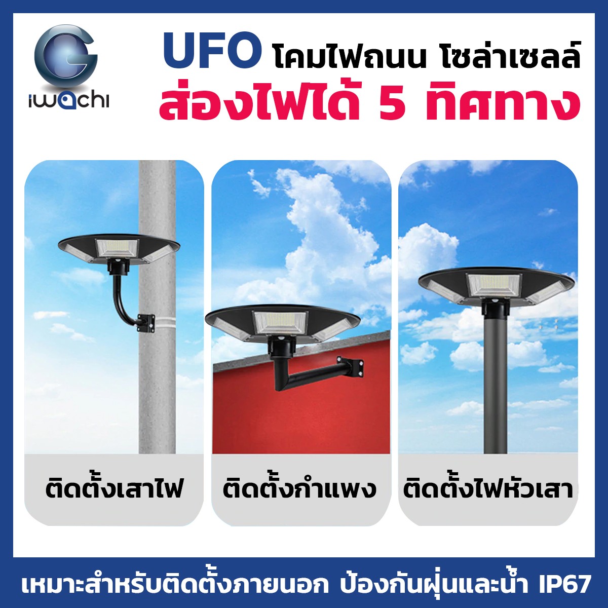 โคมไฟถนนโซล่าเซลล์ทรง UFO พร้อมแผงโซล่าเซลล์ในตัว มีขนาดให้เลือกหลายกำลังไฟ ส่องสว่างได้ดี ครอบเลนส์กระจายแสงอย่างมีประสิทธิภาพสว่างทั่วทุกพื้นที่ ทนในทุกสภาพอากาศ ติดตั้งง่าย รูปทรงสวยงาม เหมาะแก่การใช้งานเช่น ในที่กลางแจ้ง ไฟถนน ไฟทางเดินเท้า ไฟบ่อปลา ไฟรีสอร์ท เป็นต้น
