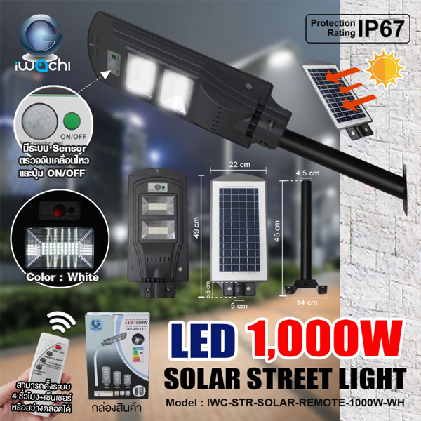 โคมไฟถนนโซล่าเซลล์ IWACHI รุ่น SOLAR-REMOTE-1000W