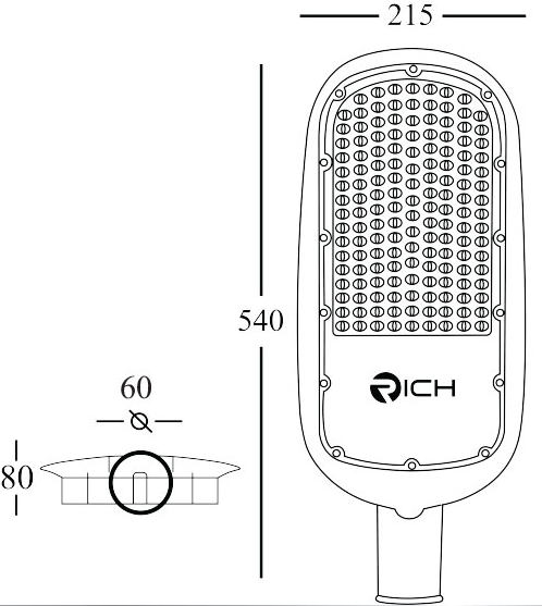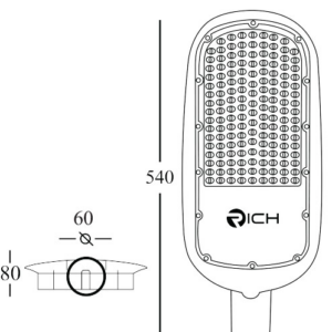 โคมไฟถนน LED RICH OVATE 150W มาพร้อมกับขายึดโคมพร้อมติดตั้ง ให้ค่าแสงส้ม Warm White 3000K และแสงขาว Daylight 6500K ตัวโคมทำมาจากอลูมิเนียมหล่อขึ้นรูป แข็งแรง ทนต่อสภาวะอากาศ มีครีบช่วยระบายความร้อนด้านหลังโคม มีระบบป้องกันไฟกระชาก 4 kV หมดกังวลเรื่องไฟกระชาก ประสิทธิภาพการส่องแสง 130 lm/W เหมาะสำหรับติดตั้งบริเวณริมถนน ทางเดิน ที่จอดรถ ทางสาธารณะ สวนสาธารณะ เป็นต้น กันน้ำและฝุ่นระดับ IP65 อายุการใช้งานยาวนาน 50,000 ชั่วโมง มาตรฐาน มอก.1955-2551 รับประกันสินค้า 2 ปี