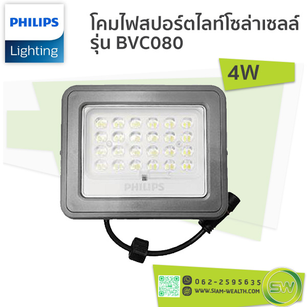 ไฟสปอร์ตไลท์โซล่าเซลล์ LED-Philips- 4W รุ่น BVC080 6/765