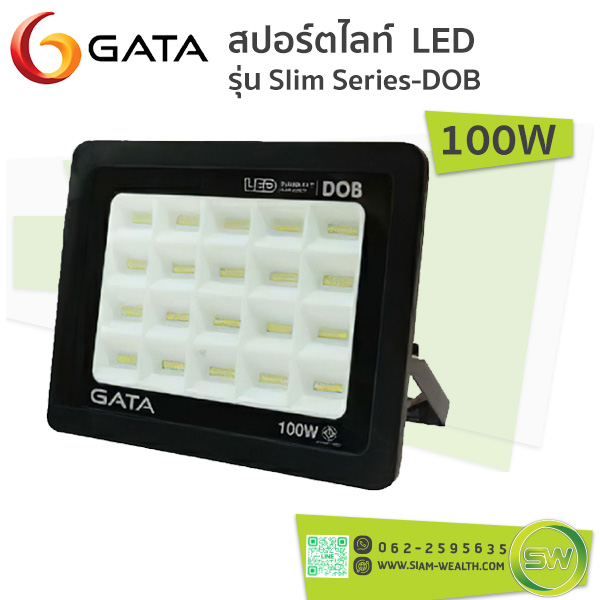 สปอร์ตไลท์ LED 100w GATA Slim DOB ตัวสินค้าผลิตจากวัสดุคุณภาพ แข็งแรง ทนทาน ผ่านมาตรฐาน มอก. เหมาะสำหรับติดตั้งในบริเวณโล่งที่ต้องการใช้แสงสว่าง เช่น บริเวณสวนหย่อม ลานจอดรถ สนามกีฬากลางแจ้ง ภายในบริเวณโรงงาน ไซส์งานก่อสร้าง ส่องป้ายโฆษณา เป็นต้น ทางบริษัทเราพร้อมและยินดีให้คำแนะนำแก่ลูกค้าทุกท่านด้วยความเต็มใจ หากท่านมีข้อสงสัยสามารถติดต่อเราได้ทุกเวลา